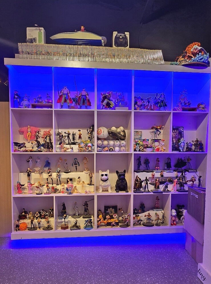 입구에 들어서면 피규어들이 맞이해 주고 있으며, 락카들이 줄지어 있어서 정기적으로 볼링을 하고 싶다면 개인적인 물품을 놓을 수 있는 락카가 있어 좋은 듯 합니다.